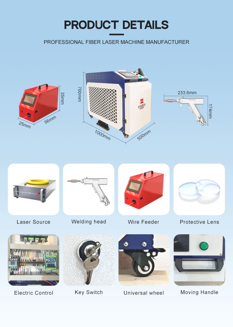 TheHUAWEI LASER 1500W 2000W 3000W Flexibilní ruční laserový svařovací strojje všestrannýRuční laserový svařovací strojNavrženo pro hladké a efektivní svařování kovů v široké škále aplikací. HUAWEI LASER 1500W 2000W 3000W Flexibilní ruční laserový svařovací strojposkytuje čisté svary, nízké tepelné zkreslení a spolehlivý výstup pro výrobu, opravy a montážní úlohy na místě.