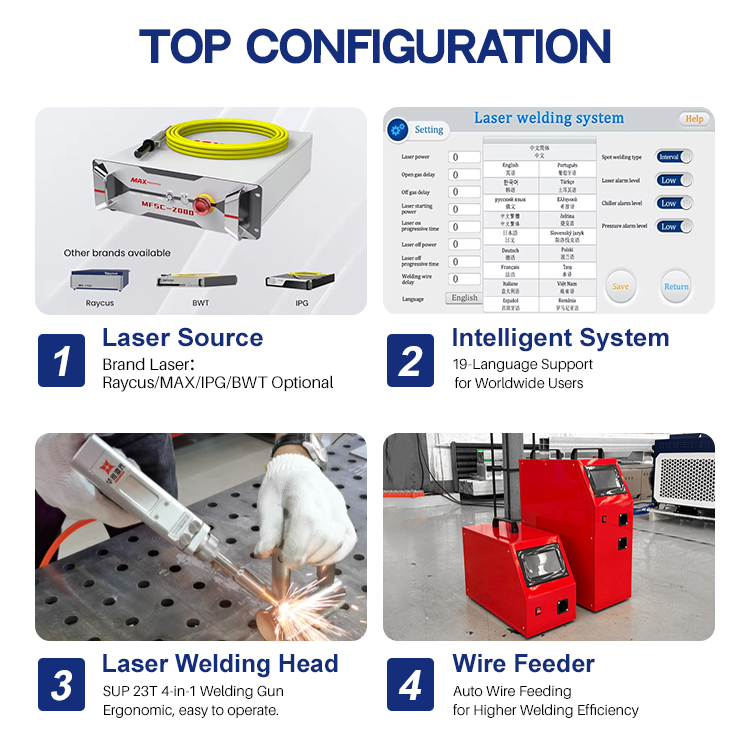 TheHUAWEI LASER Vodou chlazený ruční laserový svařovací stroj opakovatelné kvality pro sériovou výrobuje spolehlivýRuční laserový svařovací strojnavrženy tak, aby poskytovaly konzistentní výsledky svařování ve velkoobjemových výrobních sériích. Jeho pokročilý vodou chlazený systém zajišťuje vynikající tepelné řízení a stabilní laserový výstup během nepřetržitého provozu, minimalizuje tepelné zkreslení a snižuje prostoje. TheHUAWEI LASEROpakovatelná kvalita vodou chlazená ruční laserová svářečka pro sériovou výrobu vyrábíčisté svary, silná integrita spojů a jednotný výkon na nerezové oceli, uhlíkové oceli, hliníku a dalších kovech. Tento stroj, navržený pro výrobní prostředí, výrobní dílny a průmyslové opravárenské pracovní postupy, poskytuje spolehlivý provoz, hladkou manipulaci a stálou kvalitu – což z něj činí ideální řešení pro dávkové svařování a rozsáhlé kovoobráběcí aplikace.